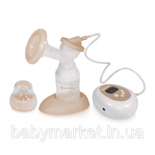 Легкий, портативний електричний молоковідсмоктувач LORELLI з LCD-дисплеєм пропонує природний ритм пульсу, який схожий на грудну дитину, щоб стимулювати кровообіг і викликати швидкий, стійкий потік молока. Просто натисніть головний пристрій під час зціджування для регулювання рівня всмоктування. Ви можете зціджувати молоко прямо в пляшечку 150 мл, яка вводить в комплект. Розроблений для роботи як від електромережі, так і від батарейок (до комплекту не входять). Електричний молоковідсмоктувач LORELLI дає змогу гнучко використовувати його вдома або в дорозі для зайнятих матерів-годувальниць.